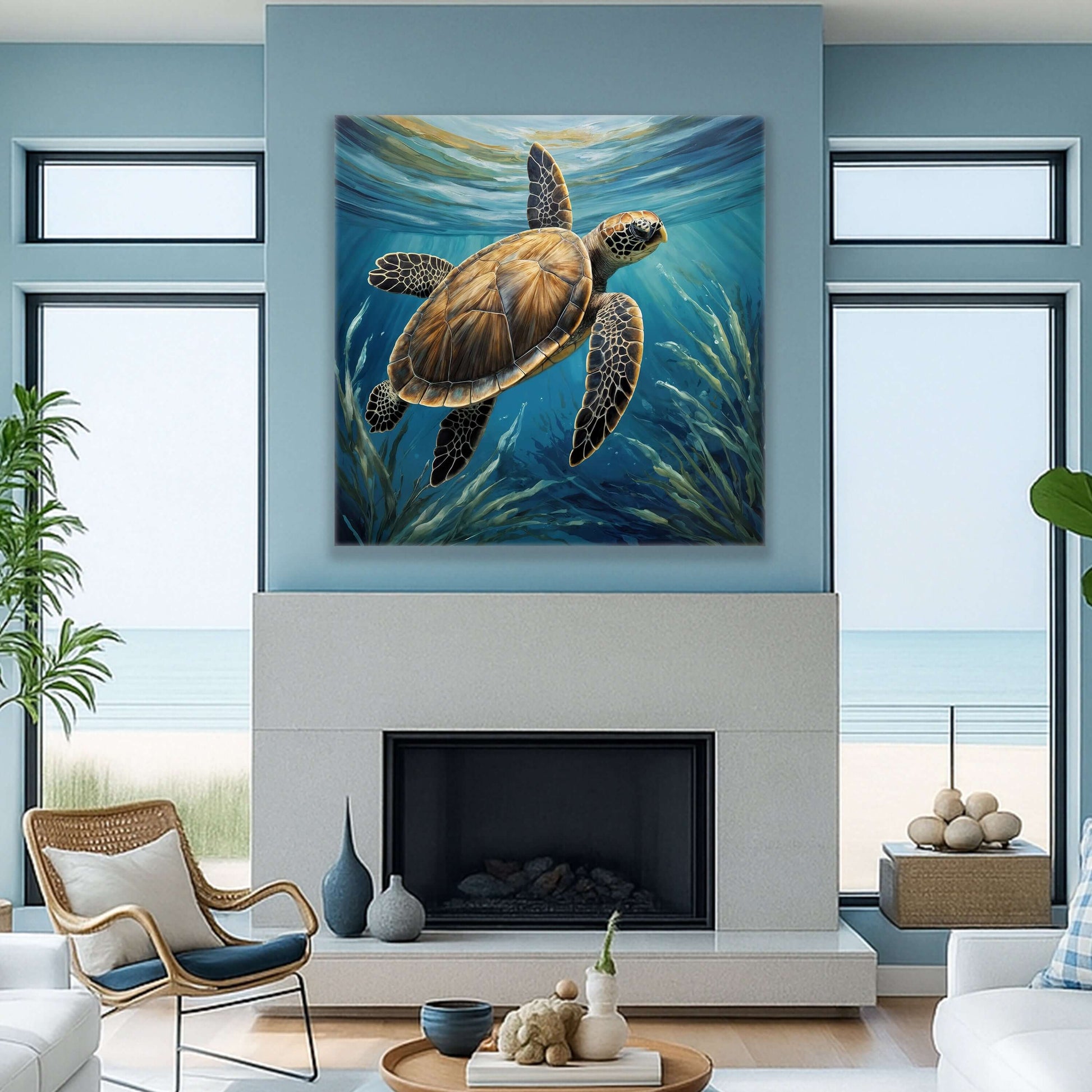 Turtle In Seagrass Coastal Canvas Wall Art