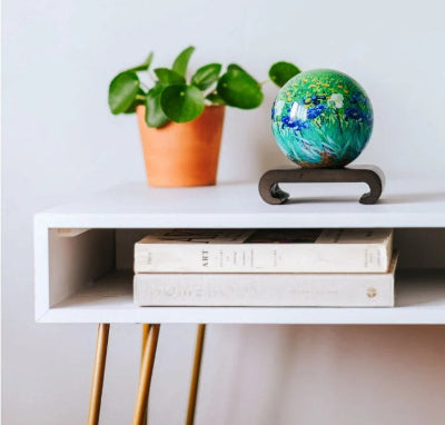 Bring Van Gogh's timeless masterpiece to life with the Irises MOVA Globe – a self-rotating art piece that blends the beauty of fine art with modern solar-powered technology.